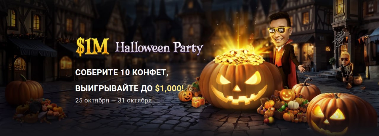 Последняя неделя октября будет особенно выгодной для кэш-игроков ПокерОК. С 25 октября (то есть уже с завтрашнего дня) и до 11 утра 1 ноября все игроки будут собирать праздничные конфеты — а потом обменивать их на призы вплоть до $1,000. Всего за неделю раздадут $1,000,000 💰