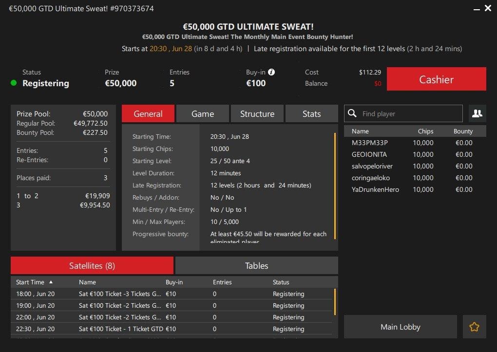 В последнее воскресенье месяца на RedStar проходит Ultimate Sweat: нокаут-турнир с бай-ином €100 и гарантированным призовым фондом €50,000. Принять участие в нем можно бесплатно — нужно выполнять простые задания и пройти несколько отборочных сателлитов.
