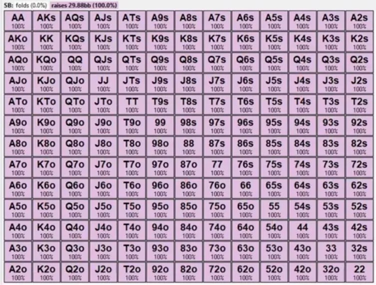 ✋ Не ориентируйтесь на солверные рейнджи. Да, каждый раз их корректировать — много работы, но работа эта полезная. Пусть другие реги изучают 50 чартов в день, а вы будете успевать посмотреть только 7, ничего страшного. Толку от вашей работы будет гораздо больше. Вы быстро запомните эвристики и будете спокойно фолдить условные JJ против тайтовых игроков. А ваши оппоненты так и будут выставляться против АА и КК, потому что GTO им так велела.