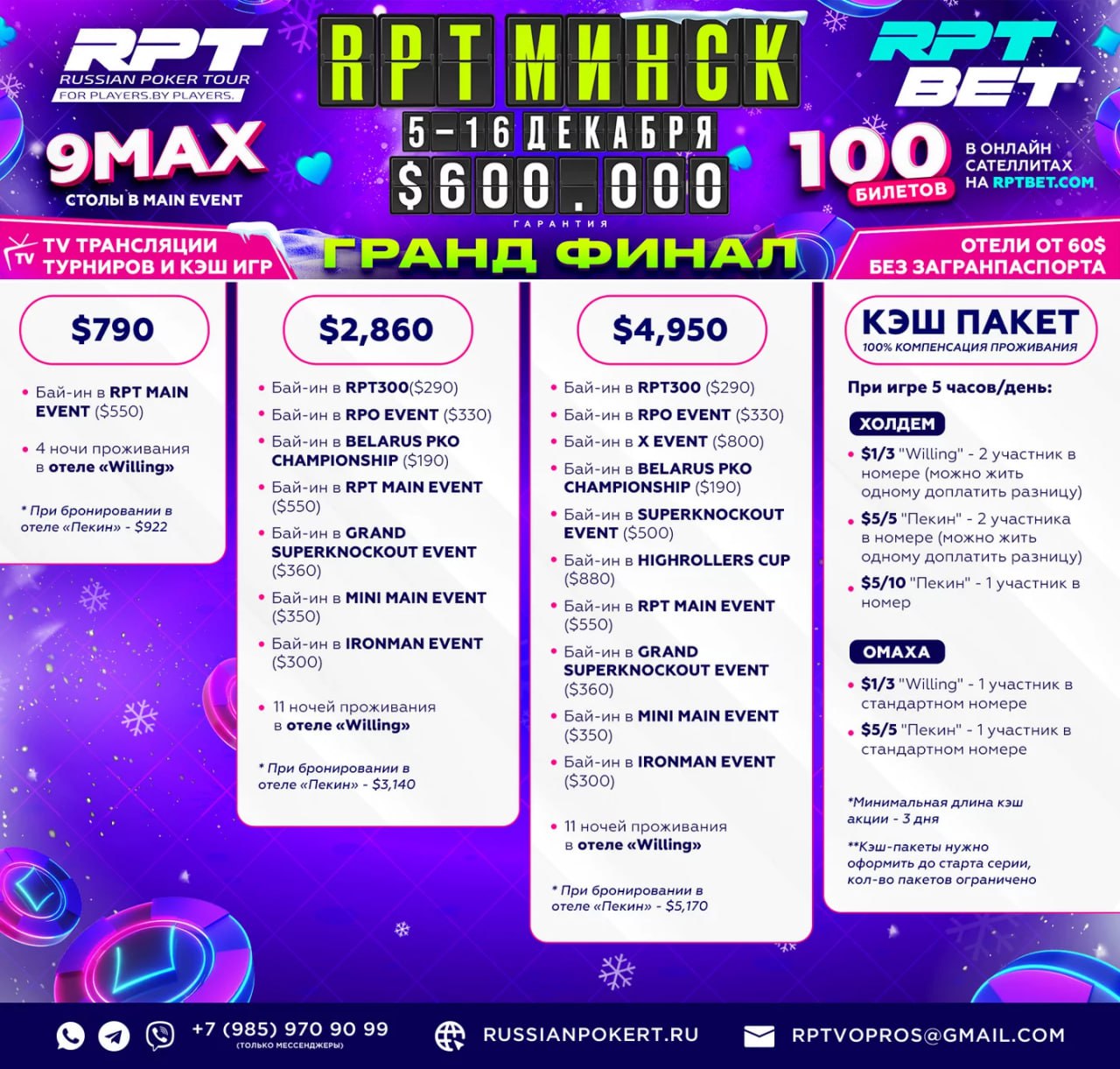 Турнирные и кэш-пакеты для гостей Гранд-Финала RPT в Минске