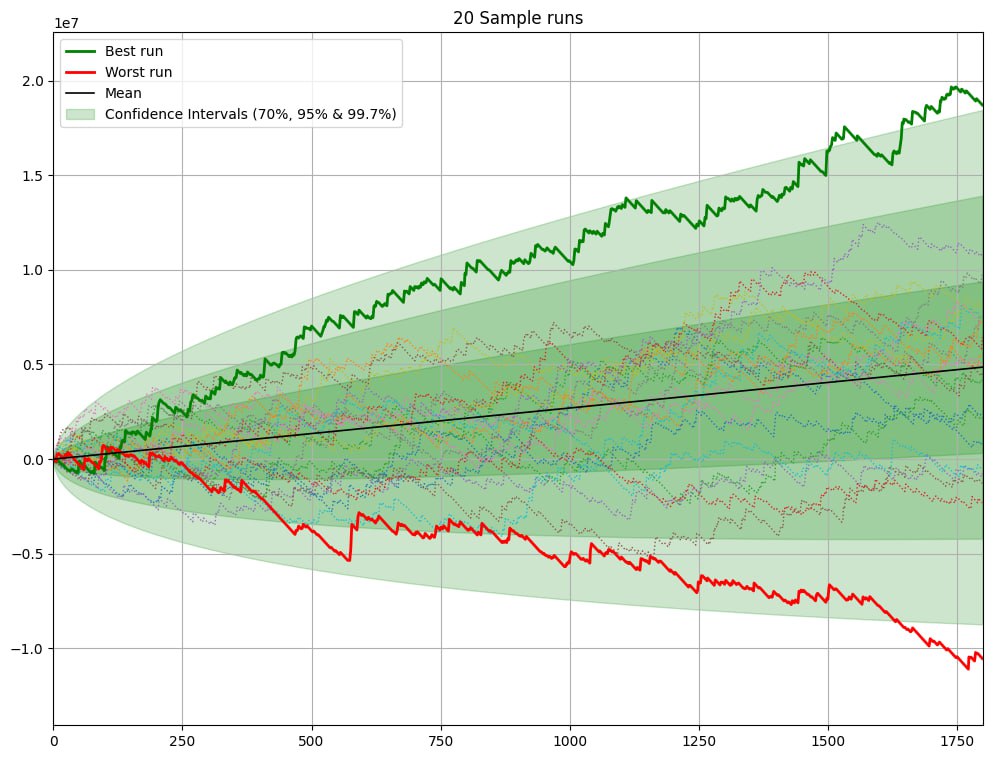 🎓 Работайте над игрой. Всегда будет полезно и любителям, и профессионалам. В конце концов, это важнейший способ повысить ROI и снизить дисперсию. Чем качественнее ваши решения, тем меньше будет стриков (и они будут короче). Скажем, вы играете всё те же турниры по $22 с AFS 100 человек, но уже с ROI 50%. На дистанции в 10k МТТ ожидаемый ROI будет уже от 38% до 62%, это от $83k до $137k профита.