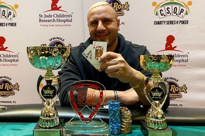 🕺 Два кубка для Мизрахи. Гриндер (помните это прозвище?) затащил турнир за $300 на благотворительной серии CSOP ($5,000). Второй кубок (и $1,000 к нему) дали за то, что Майкл был чиплидером к первому брейку. В прошлом году Мизрахи выиграл шестой браслет (в онлайне), ему покорился турнир за $888 (дали $109k). Жив и легитимен! Его брат Роберт, кстати, тоже завоевал летом браслет WSOP, пятый в его резюме.