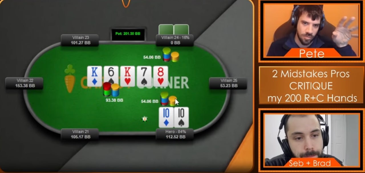 Глава школы Carrot Corner созвонился и обсудил раздачи с с двумя регами мидстейкс, которые тренируются у очень сильных игроков. Вот одна из интересных: