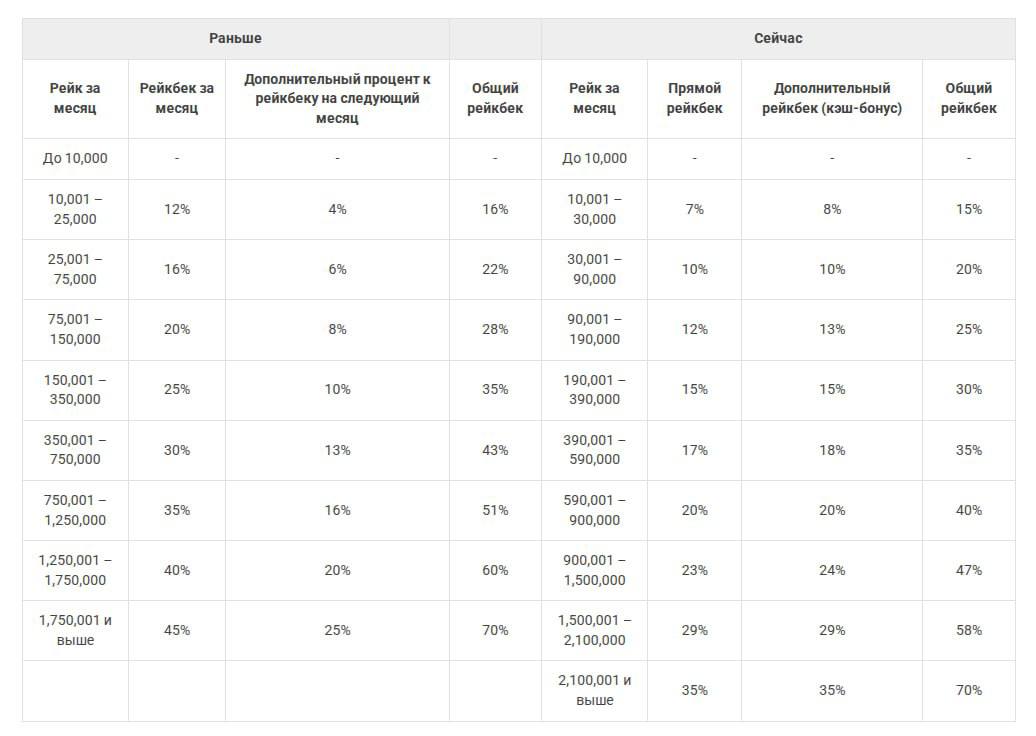 🔙 Раньше. Рейкбек состоял из двух частей: до 45% начислялось по итогам месяца + на следующий месяц шло до 25% дополнительного рейкбека.