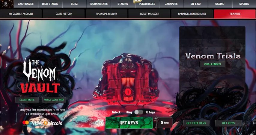 Вкладка Venom Vault появилась в клиенте в разделе Rewards. Там можно открывать призовые сундуки при помощи ключей.