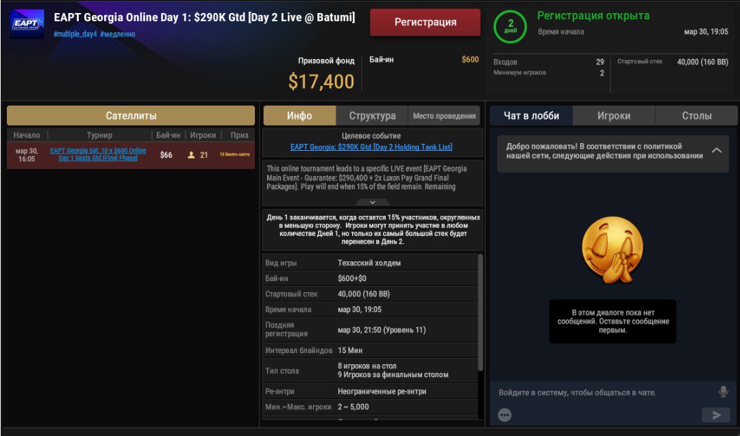 Онлайн-день мейна EAPT Батуми стартует завтра