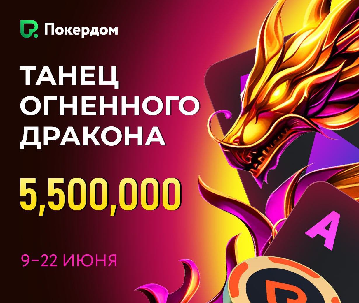 🏆 Серия турниров. Каждый день с 16 по 22 июня будут проходить по три турнира с бай-инами от 500. Самым дорогим станет Главный Турнир – Огненный Дракон за 7,500 ₽, призовой фонд составит 500,000.