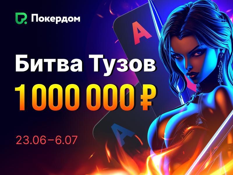 Сегодня на Покердоме стартовала акция «Битва Тузов», где за две недели планируют разыграть 1,000,000 рублей в двух лидербордах. Гонка пройдет в два этапа, призовой фонд каждого — по 500,000: