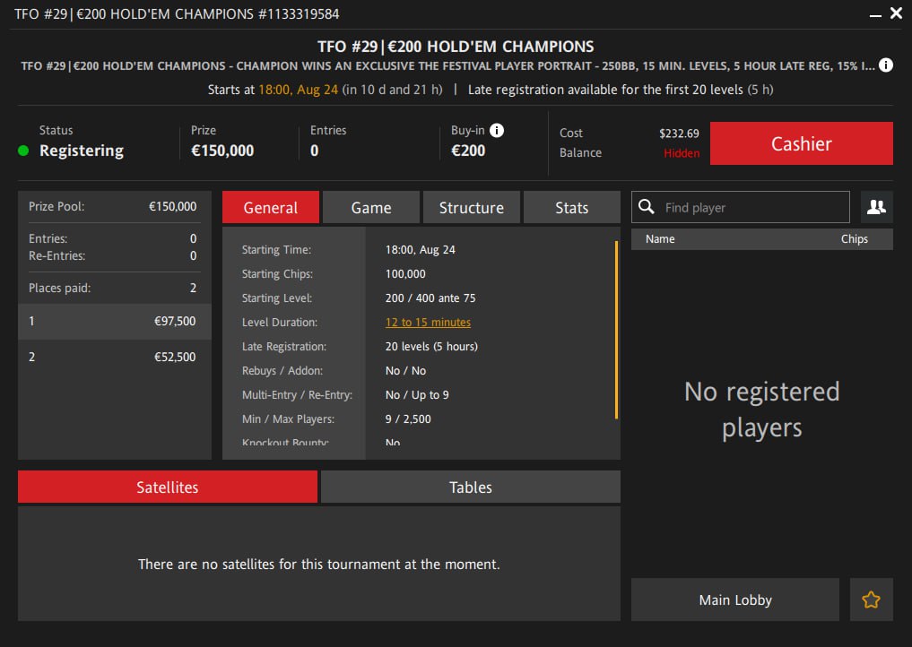 🎁 Розыгрыш пакетов по €1,850 на The Festival Malta. Если сыграть 3 сателлита FLIP FLOP по ходу серии (бай-ин €5 и выше), то дадут билет на турнир €1,850 Package Flip Flop с розыгрышем пакета (бай-ин, проживание, страховка и расходы). Миссию нужно выполнить с 3:00 14 августа до 2:59 26 августа. Турнир начинается в 21:00 по Москве 26 августа.