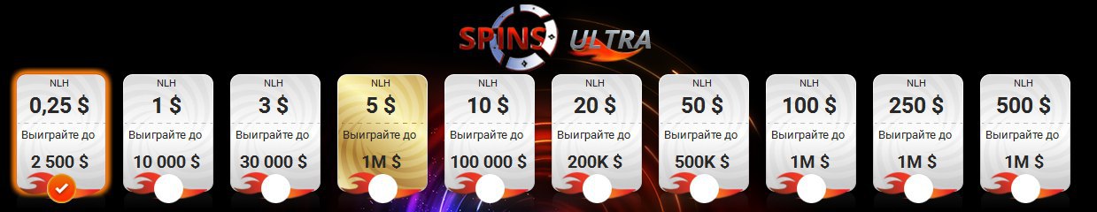 29 сентября на partypoker появились новые лимиты Spins Ultra, спинов с ускоренным ростом блайндов и уменьшенным стеком. Теперь играть флеш-спины можно на любом лимите от $0.25 до $500.