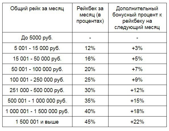 Полные таблицы с выплатами и рейкбеком опубликованы на форуме. В среднем первая программа дает 25% рейкбека, но распределяются они неравномерно: самые крупные бонусы дают на высоких уровнях. Покердом рекомендует переходить на “Машину времени”, если игрок отыгрывает свыше 5,000 рублей рейка в месяц.