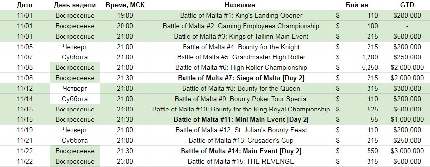 Битва за Мальту: турнирная серия на GGпокерОК в ноябре на $30,000,000