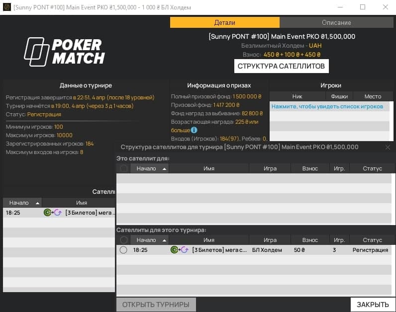 3 апреля, 18:15 — PLO, бай-ин ₴2,000, гарантия ₴500,000.