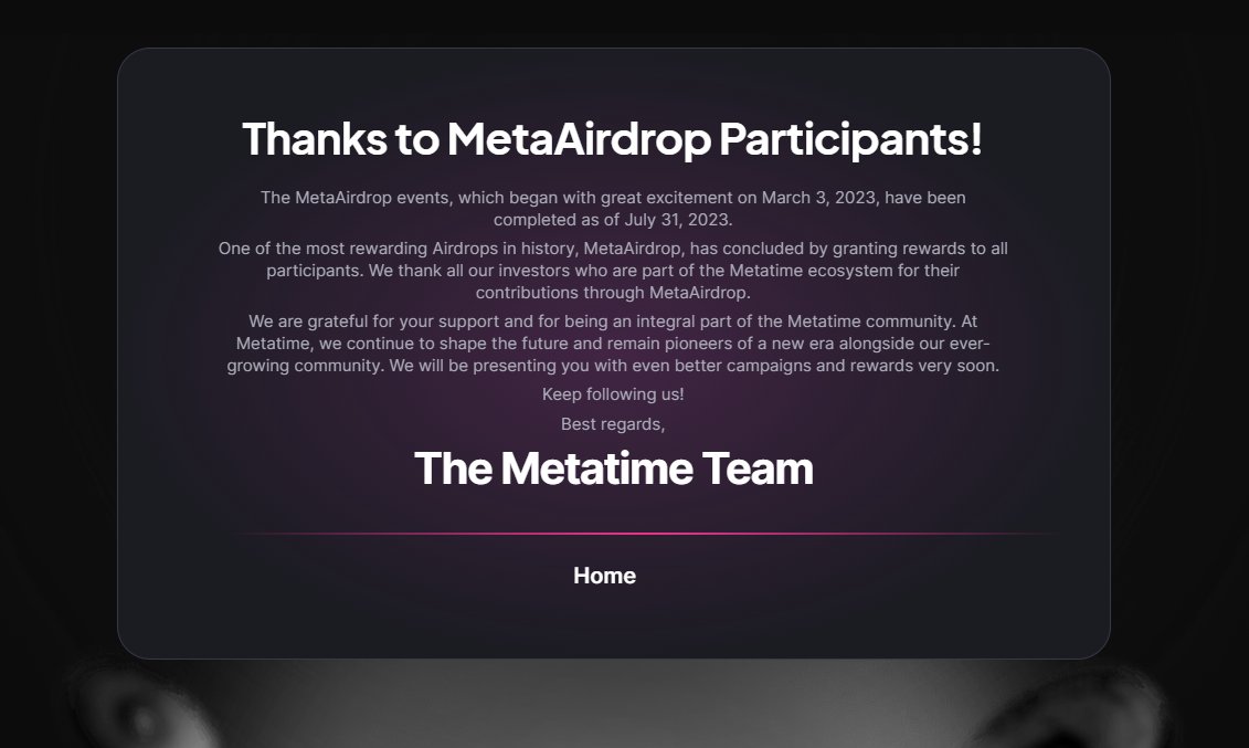 ๐นMetaTime Airdrop was Terminated on 31st July