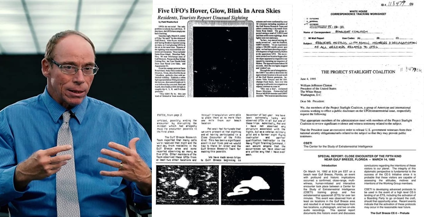 О запугивании и попытках подкупа со стороны разведсообщества рассказал известных исследователь инопланетного разума Стивен Грир. По его словам, все началось с организованного им массового контакта с инопланетянами на побережье Пенсакола, в котором приняли участие 60 человек: