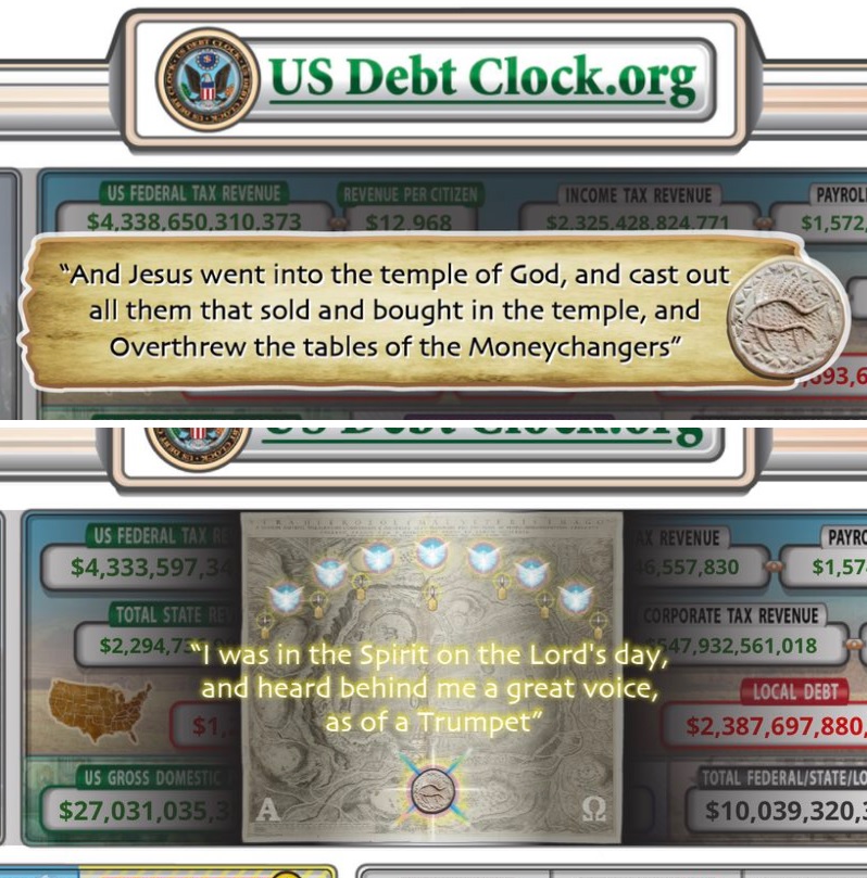 Эти необычные сообщения, появившиеся на сайте «Долговые часы», созданные в 1980-х годах миллиардером по имени Дерст, были удалены ровно в полночь. Многие уже предположили, что это сделано с целью намекнуть на крах всей мировой финансовой системы.