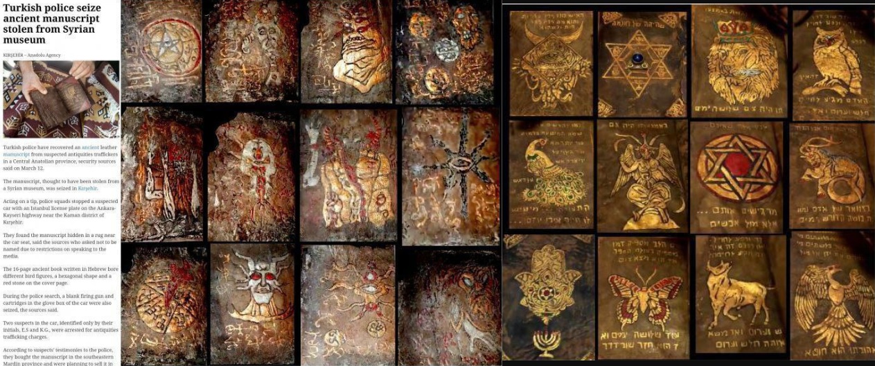 Турецкая полиция арестовала четырех бывших боевиков Файлака ар-Рахмана и гражданина Турции, которые пытались продать две редкие позолоченные еврейские «Торы», украшенные сатанинской символикой иллюминатов. Известно, что эти и другие Торы были обнаружены 2018 году в Сирии в древних "синагогах сатаны", которым несколько тысяч лет. После того, как следователи осторожно развернули один свиток, они обнаружили изображение головы барана внутри чего-то, похожего на пентаграмму. В Торах изображены демон Бафомет, треугольники иллюминатов со всевидящим оком, змеи, знаки каббалы, совы и многое другое.
