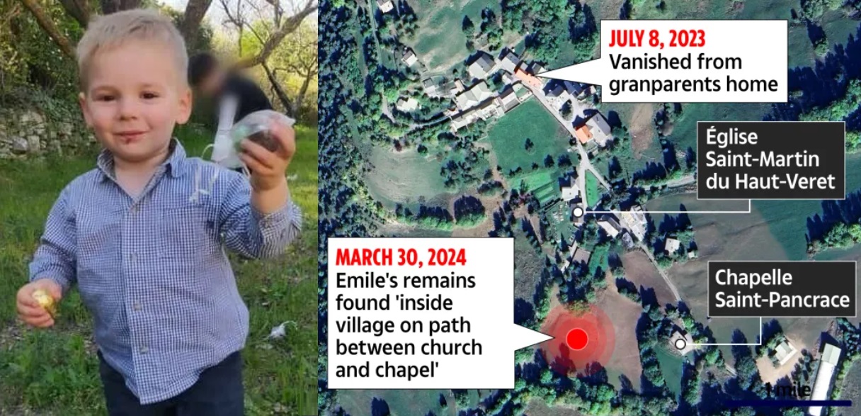 Эд Дэймс еще в декабре 2023 года отправил письма французским властям, указав местонахождение останков Эмиля. А 30 марта 2024 года они были найдены на небольшом поле, расположенном между деревенской церковью и другим соседним зданием, всего в километре от дома его деда, где он исчез. Оказалось, что останки ребенка нашел лишь по случайности прохожий, а власти не обратили никакого внимания на послания бывшего экстрасенса ЦРУ. Но он указывал им заранее именно на это место. С помощью удаленного видения он точно определил место, где в конечном итоге был обнаружен ребенок. В подтверждение своих слов Эд Дэймс предоставил переписку с полицией по электронной почте.