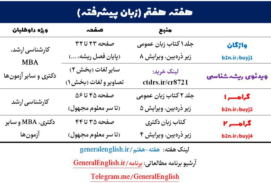 هفته هفتم از طرح مطالعاتی رایگان زبان