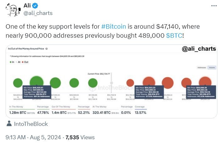 Почти 900 000 адресов ранее купили 489 000 BTC по этой стоимости.