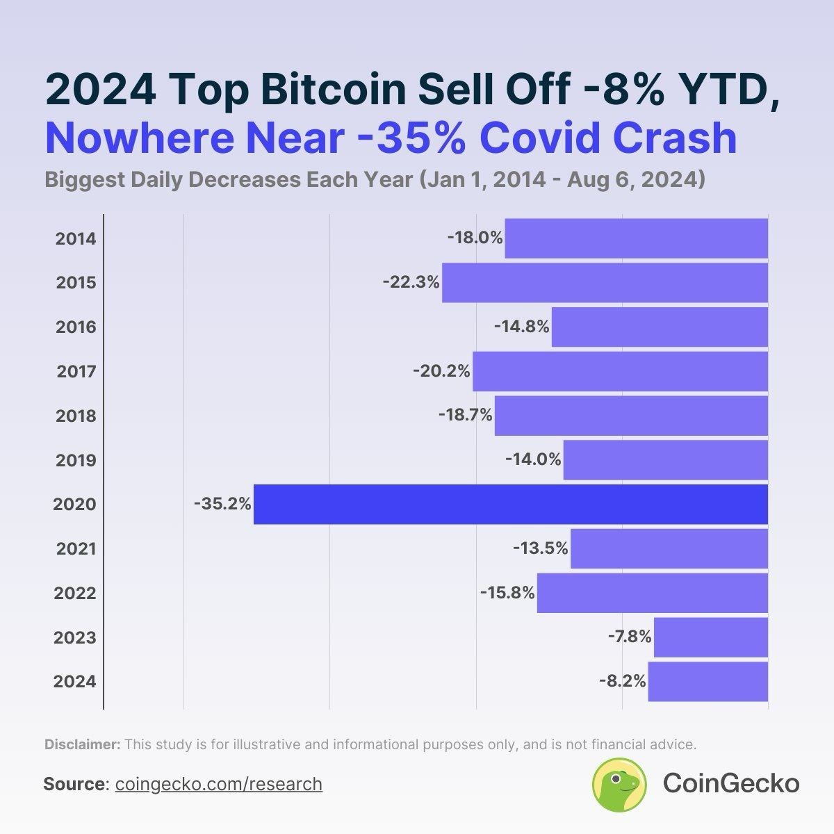 Последнее исследование CoinGecko показало, что Bitcoin зафиксировал самую большую коррекцию цены на 35,2% за один день 13 марта 2020 года.