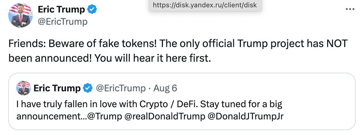 Также Дональд Трамп-младший объявил о планах по запуску новой криптовалютной платформы DeFi для решения проблемы неравенства в доступе к банковским услугам. Однако платформа все еще находится на ранних стадиях и потребуется некоторое время, чтобы она стала реальностью.