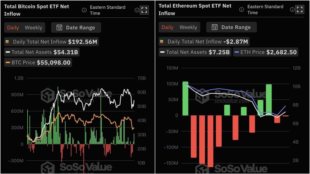 Отток Grayscale BTC-ETF составил -$183 млн, у BlackRock имел приток в размере +$158 млн, а WisdomTree в размере +$119 млн.