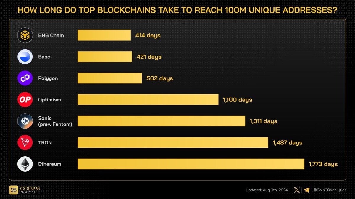 На это Base понадобился 421 день, а Optimism — 1100 дней.