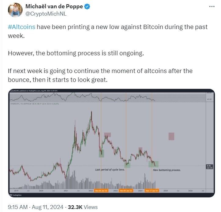 Несмотря на это, процесс достижения дна всё ещё продолжается. Если на следующей неделе альткоины продолжат свой путь после отскока, то картина станет выглядеть отлично.