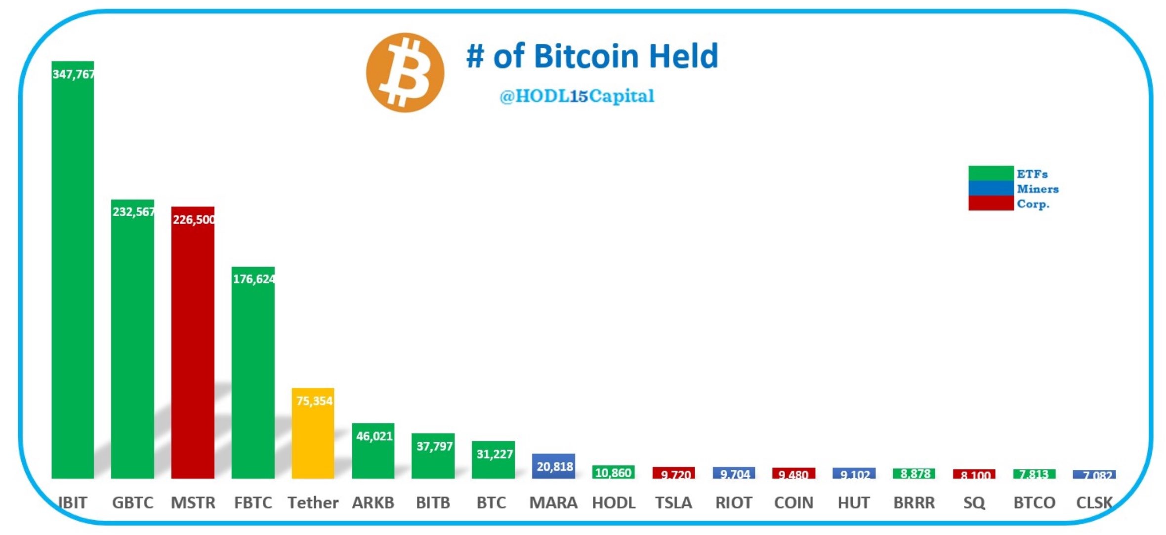 HODL15Capital: крупнейшие корпоративные держатели биткоинов по состоянию на 09.08.2024