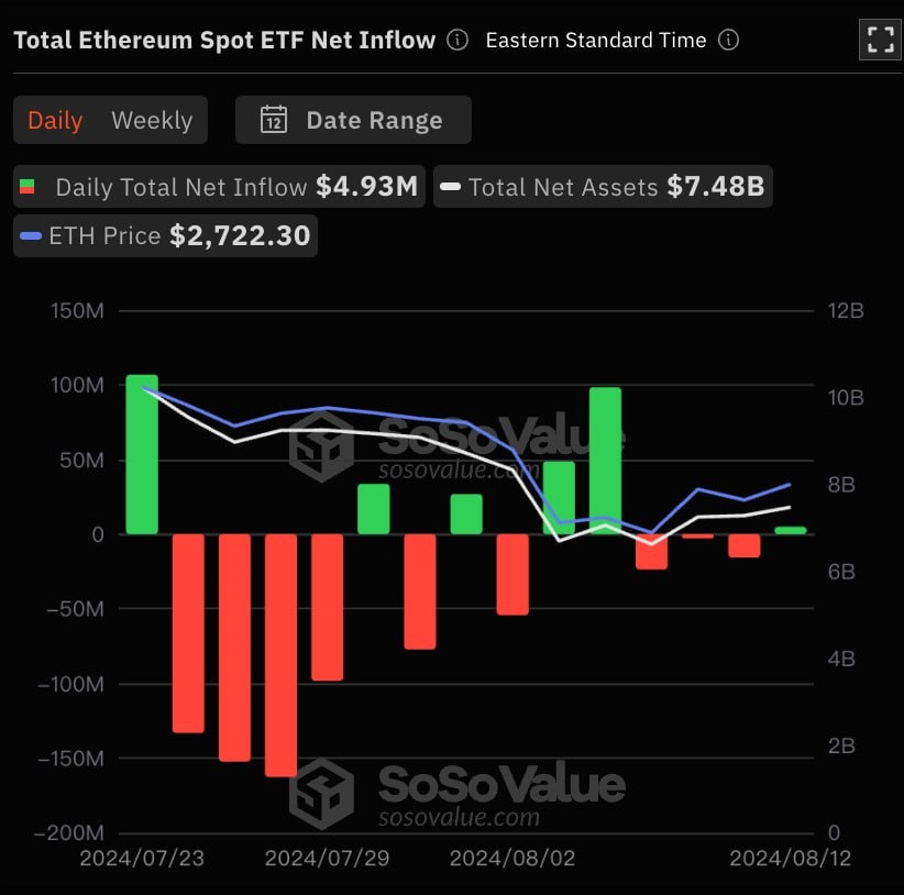 🔸Ежедневный общий чистый приток: +$4,93 млн