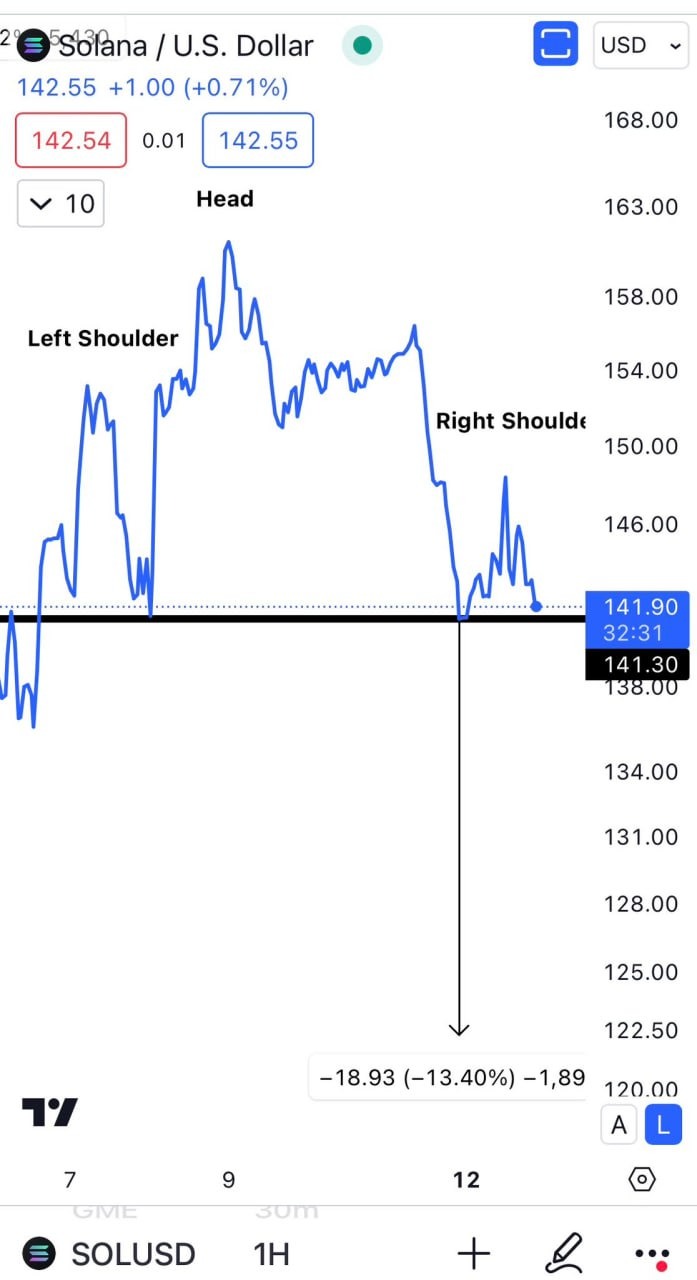 Такая картина предполагает, что падение ниже $141 может спровоцировать коррекцию, в результате которой SOL достигнет $122.