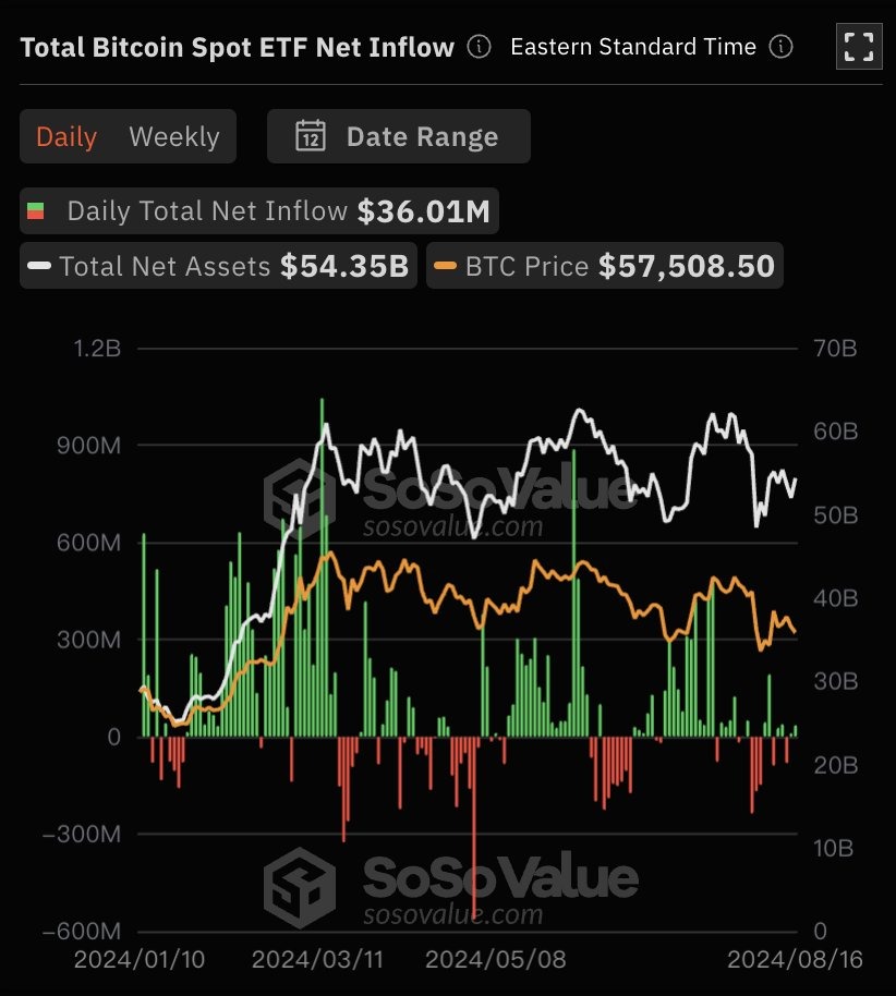 🔸Ежедневный общий чистый приток: +$36,01 млн