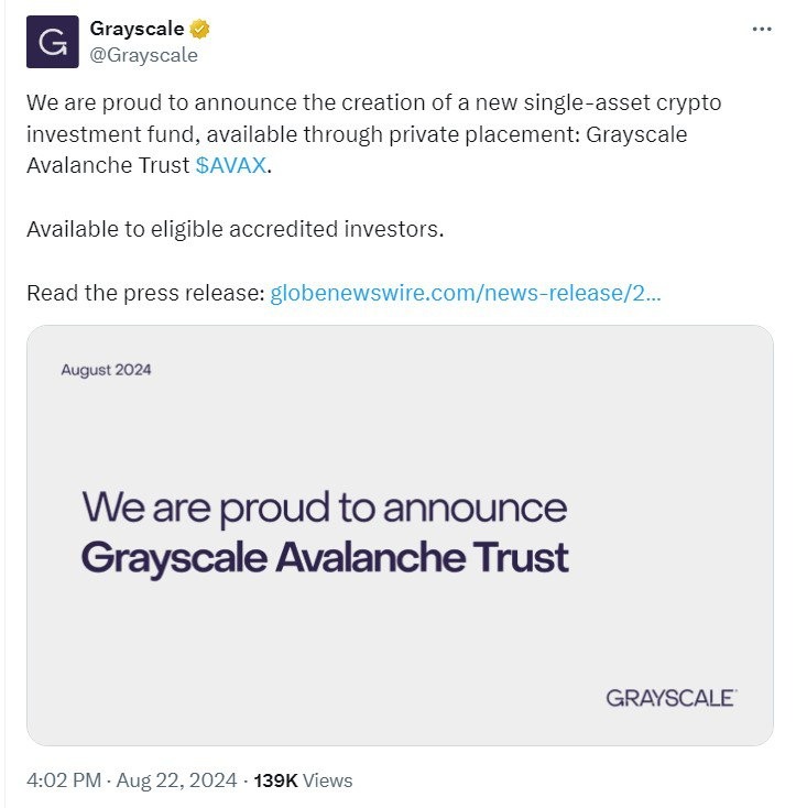 Траст работает аналогично другим инвестиционным фондам Grayscale с одним активом. Он сосредоточен исключительно на инвестировании в токен AVAX, который поддерживает сеть Avalanche и и содействует токенизации реальных активов.