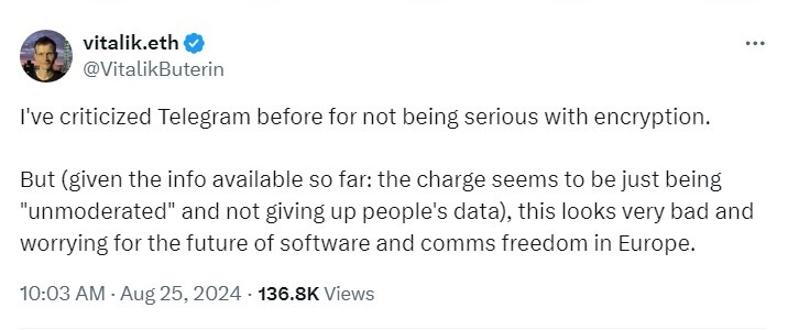 Я уже критиковал Telegram за несерьёзное отношение к шифрованию. Но (учитывая имеющуюся на данный момент информацию: обвинение, похоже, заключается только в «немодерации» и неразглашении данных людей), это выглядит очень плохо и тревожно для будущего свободы программного обеспечения и коммуникаций в Европе.