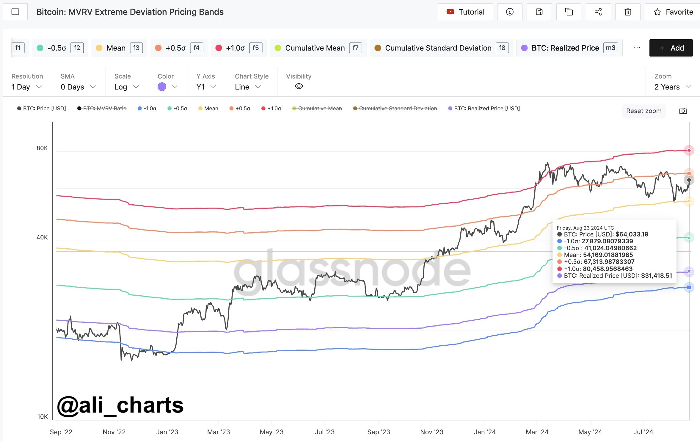 На основе ценовых диапазонов MVRV, один из самых значительных уровней сопротивления, который должен преодолеть биткоин, находится на уровне $67 300. Преодоление этого барьера может подготовить почву для роста BTC до $80 500.