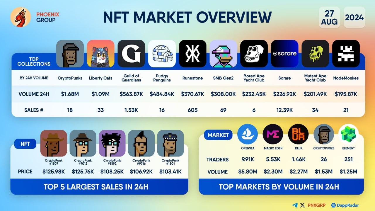 🔸Топ-коллекция по суточному объёму продаж: CryptoPunks — $1,68 млн