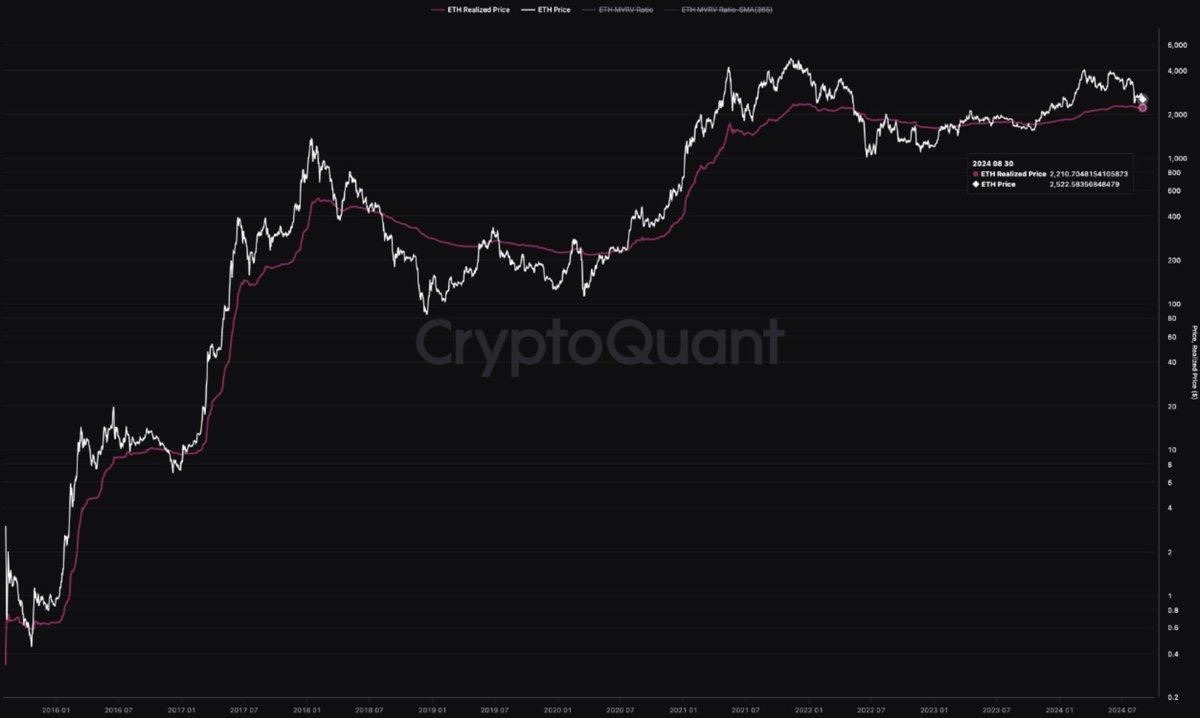 💬 Ethereum не потерял реализованную цену, которую он пробил, несмотря на резкое падение цены за последние пять месяцев, и реализованная цена выступает в качестве поддержки.