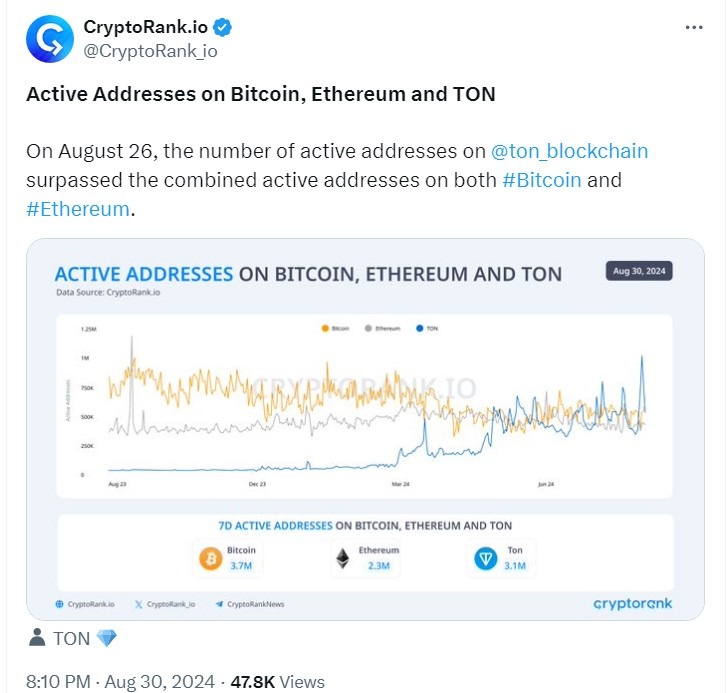 Большинство криптовалют из топ-10 находятся в зелёной зоне, однако TON всё так же продолжает терять в цене. За сутки его стоимость снизилась на 2,2%. Рыночная капитализация на крипторынке также показала спад на 0,6%, опустившись до отметки $2,17 трлн. Биткоин остаётся ниже уровня $60 000, но пока что рано говорить, станет ли это его линией сопротивления.