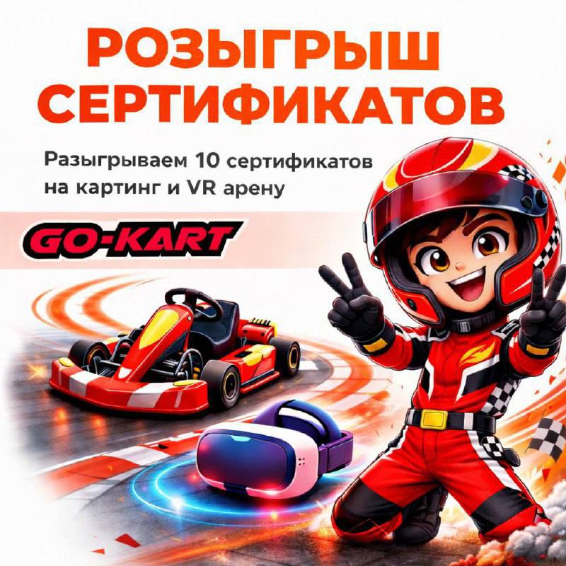 Совместно с GO-KART / VRBATTLE мы дарим целых 7 сертификатов на 2000₽ каждый!