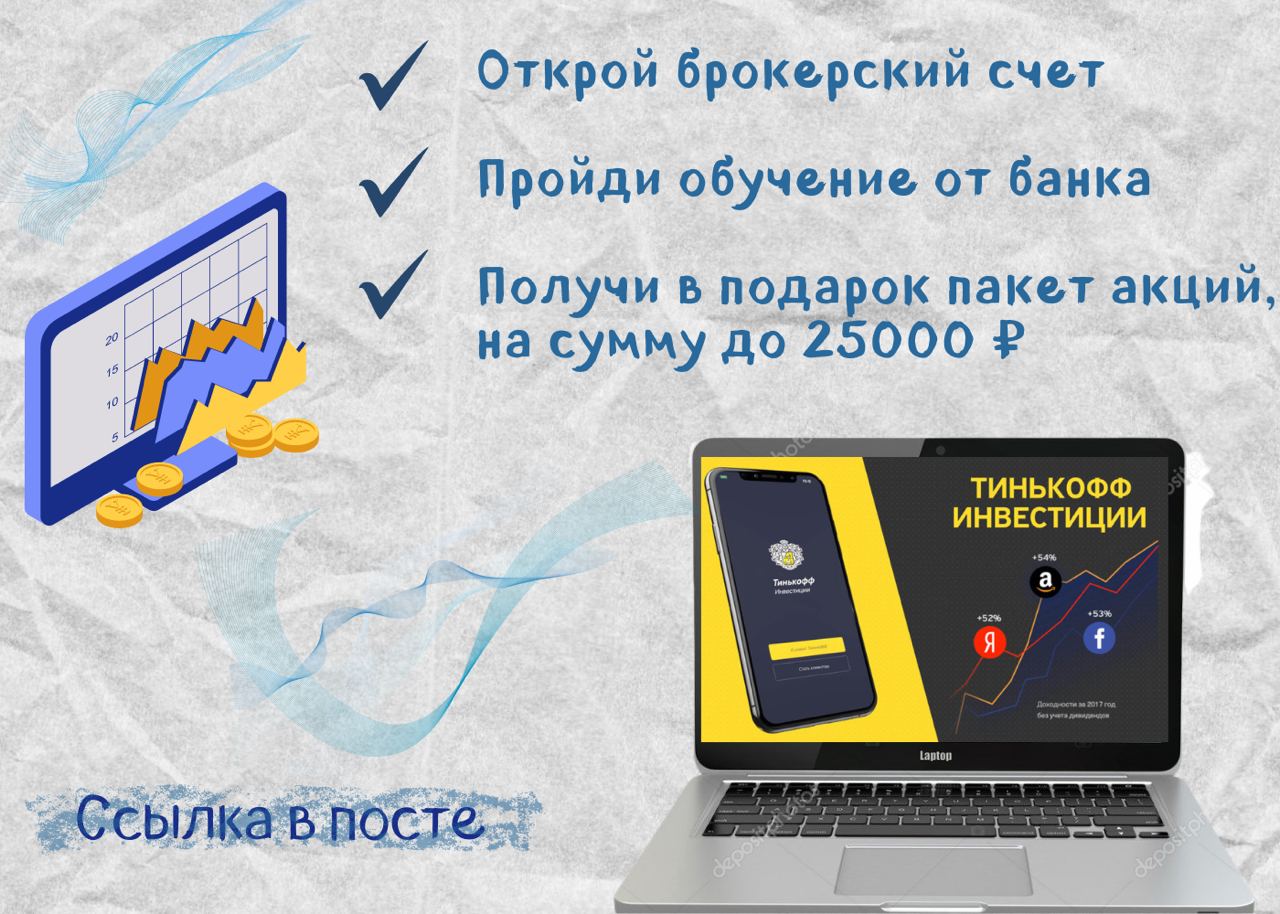 Брокер Тинькофф приготовил отличный бонус — акции в совокупной стоимости до 25 000 рублей за прохождение обучения. Акции могут попастся разные, крупной российской, либо зарубежной компании, например «Газпром» или «Microsoft».
