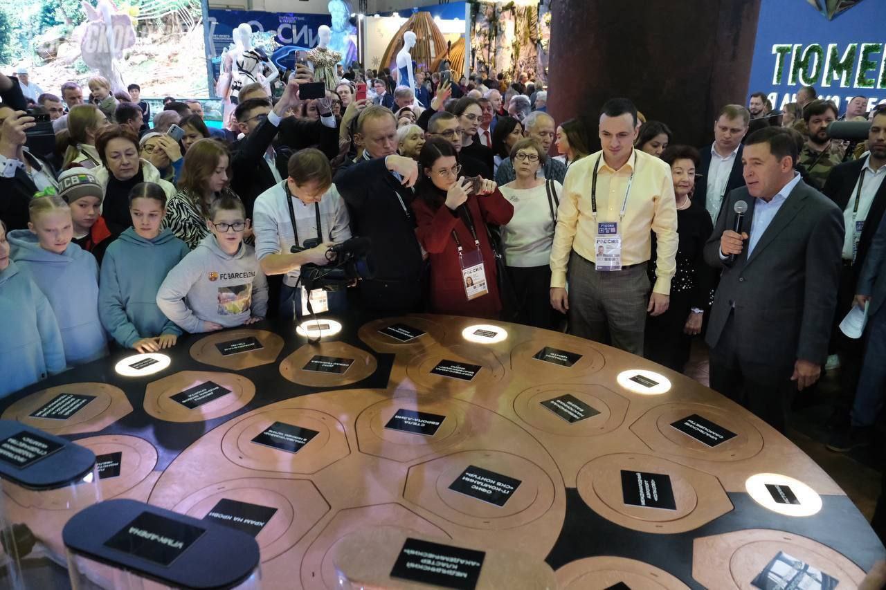 Затем бахнула презентация - самая многочисленная из всех уральских регионов, да еще и с посылом от федералов - «особый регион, становой хребет России, опорный край державы». Слушали ее студенты и простые гости выставки (и реально добровольно слушали), замгубернатора, министры, депутаты заксобрания, мэры, олигархи Виктор Вексельберг и Андрей Комаров, присоединилось правительство почти в полном составе с мэрами свердловских городов, два бывших губернатора Эдуард Россель и Александр Мишарин и даже федеральный министр здравоохранения Михаил Мурашко.