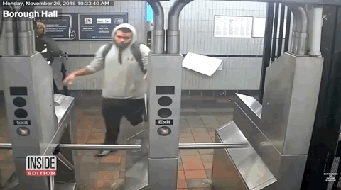 3. 擋住輪椅人士入閘機門,等其他市民行入去