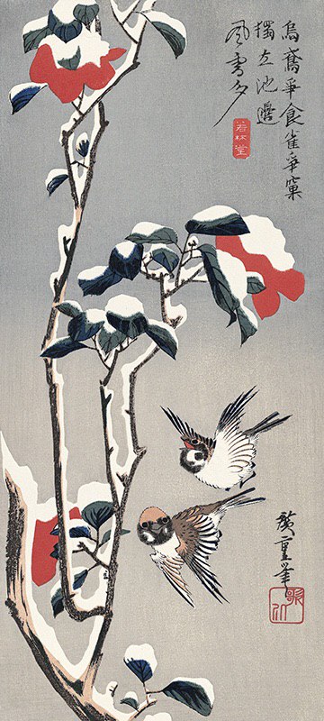 На фото: Утагава Хиросигэ, «Камелии и воробьи в снегу»