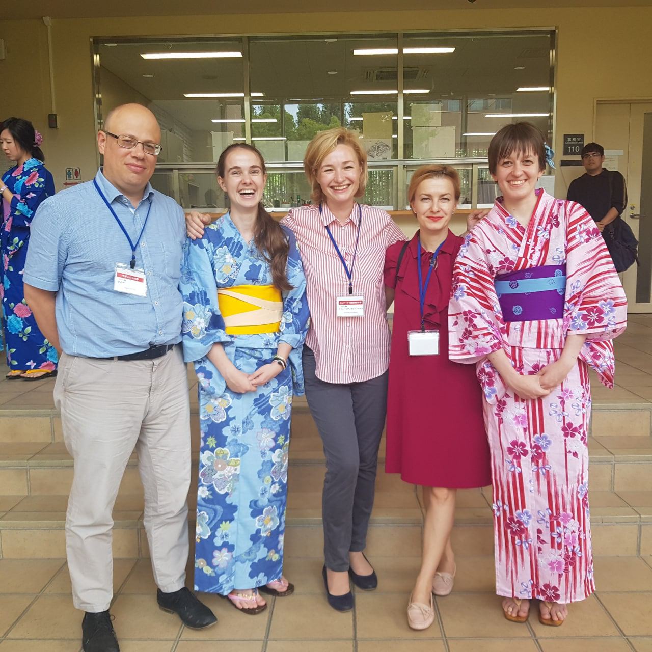 На фото Надежда Вейнберг (в центре) с коллегами из Украины и Польши, учениками на летней конференции преподавателей японского языка в Токио, 2019.