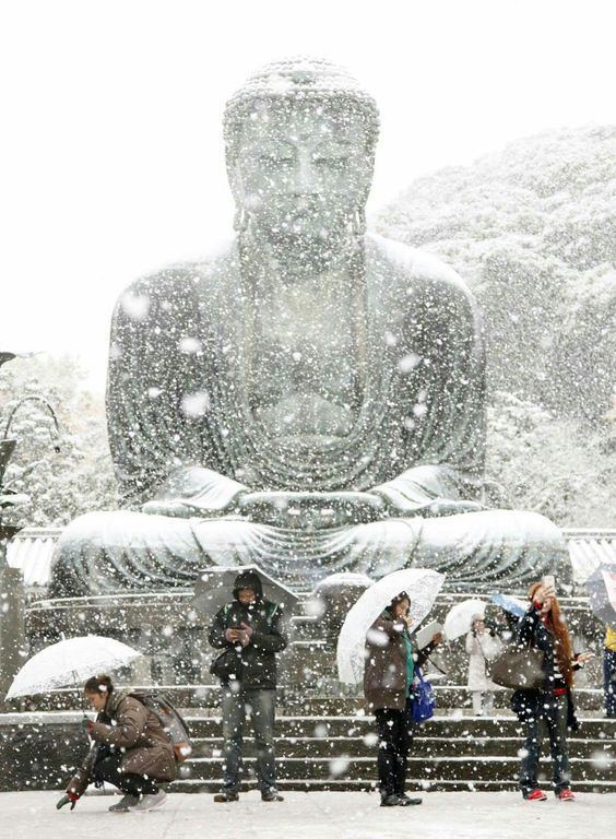 Это хайку поэта Иссы заставляет немного иначе посмотреть на статую Будды: проникнуться к нему состраданием или улыбнуться от неловкой ситуации, в которую он угодил зимой.