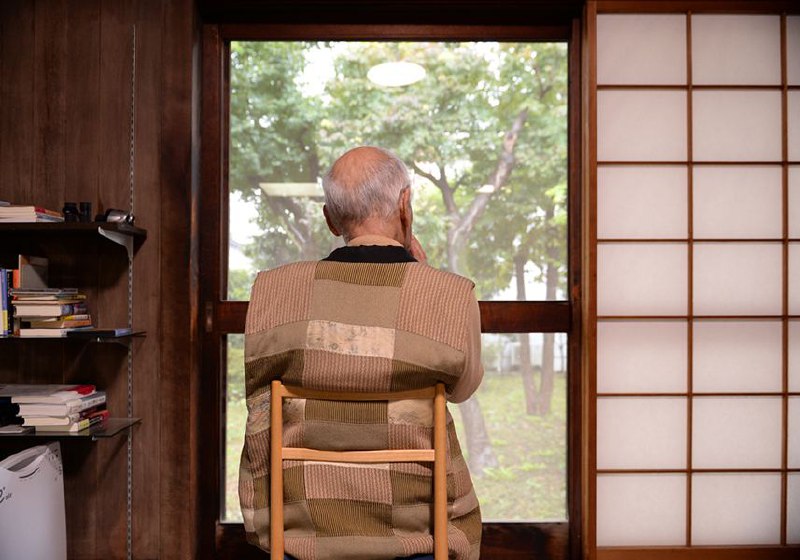 НА ФОТО: Поэт Таникава Сюнтаро смотрит в сад
