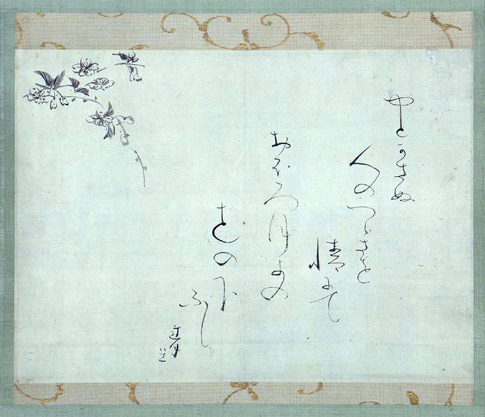 НА ФОТО: каллиграфическая работа Рэнгэцу с её стихотворением про ночлег под сакурой и луной, музей Михо