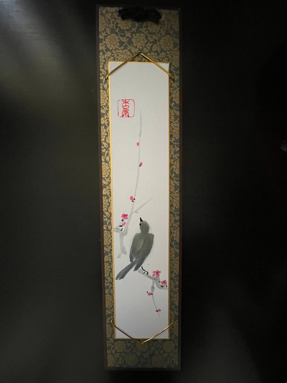 НА ФОТО: Моя работа «Цапля на иве» ( 柳に鷺 «янаги-ни саги») выполнена на очень тонкой ученической бумаге, которая чрезвычайно помогла мне в этом сюжете — её структура сама по себе создала ощущение весеннего дождя на заднем плане. В очередной раз удивляюсь, что дешевая вещь иногда сослужит службу получше дорогой